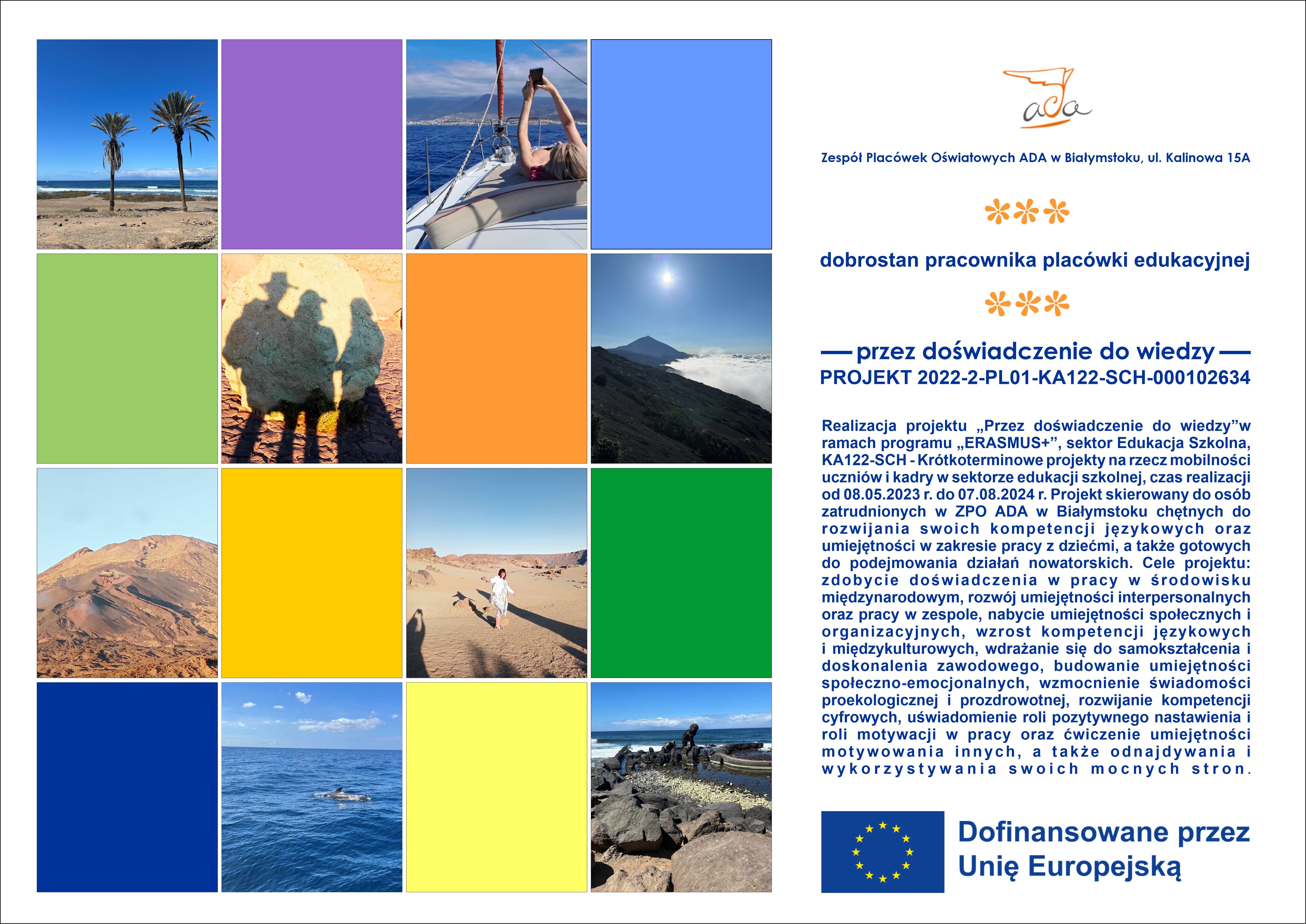 Zespół Placówek Oświatowych ADA w Białymstoku realizuje projekt „Innowacyjna edukacja bez granic- mobilność, rozwój, przyszłość” ze środków Europejskiego Funduszu Społecznego Plus w ramach Programu Fundusze Europejskie dla Rozwoju Społecznego (FERS) 2021-2027, projektu „Międzynarodowa mobilność edukacyjna uczniów i kadry edukacji szkolnej”