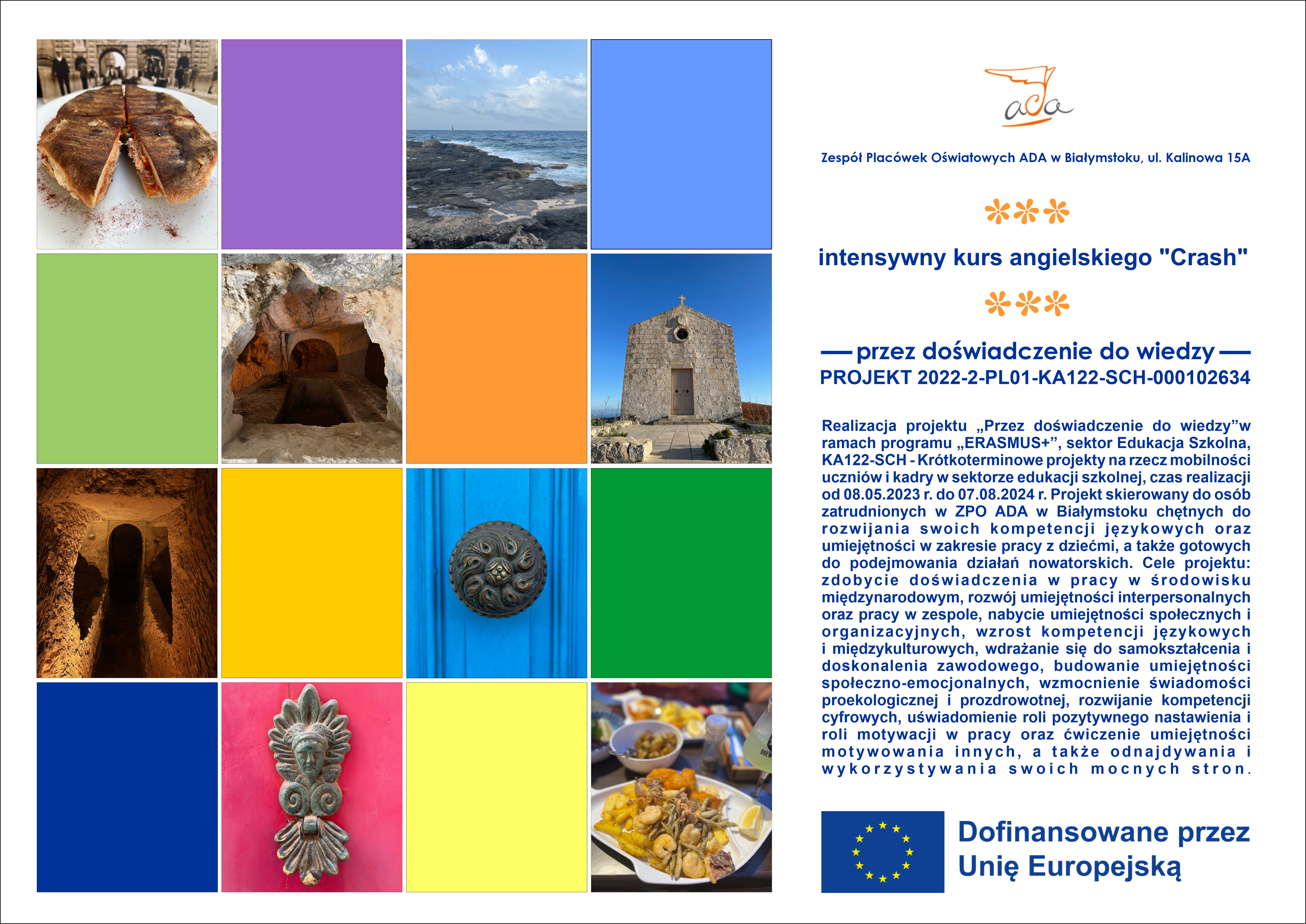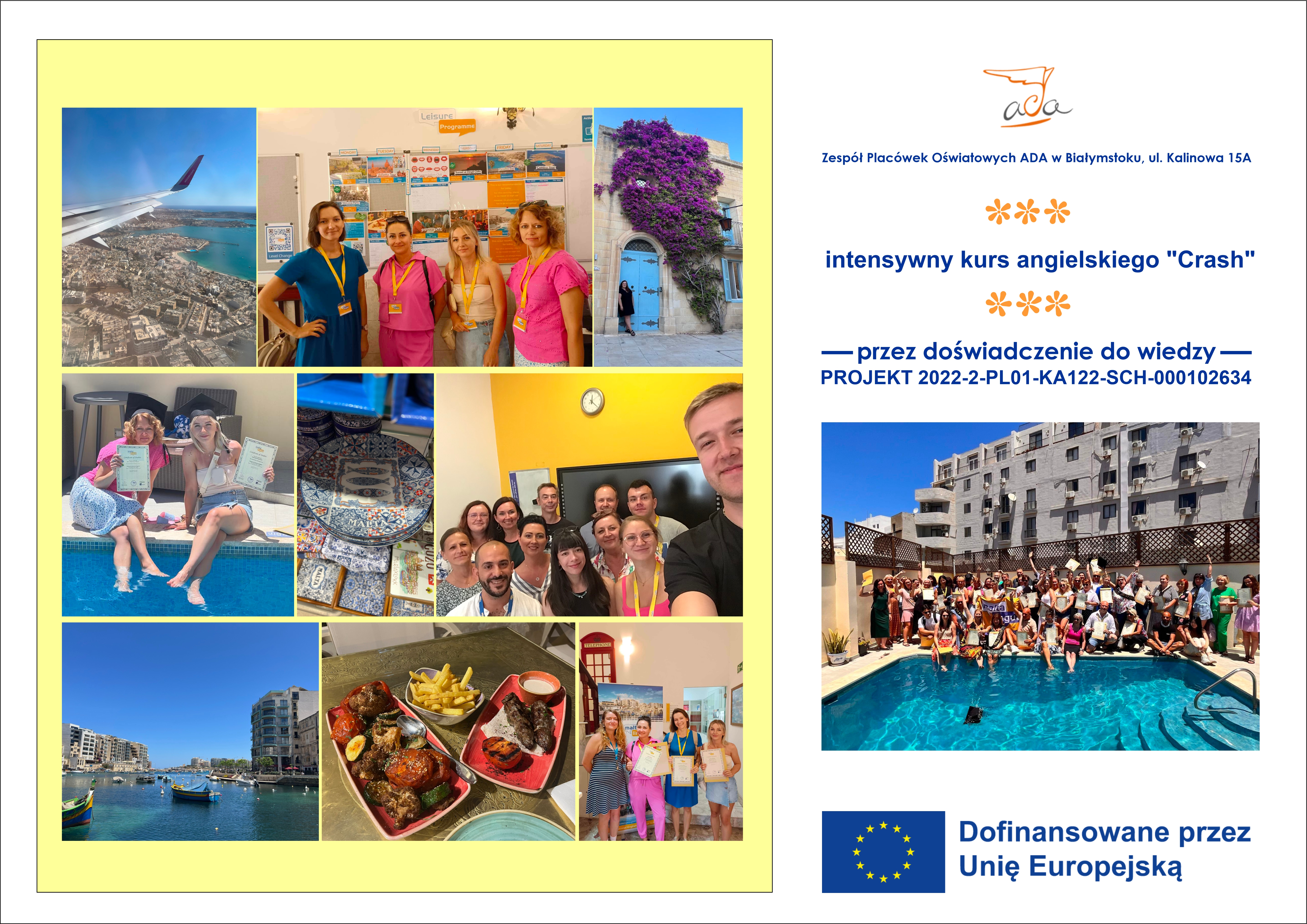 Zespół Placówek Oświatowych ADA w Białymstoku realizuje projekt „Innowacyjna edukacja bez granic- mobilność, rozwój, przyszłość” ze środków Europejskiego Funduszu Społecznego Plus w ramach Programu Fundusze Europejskie dla Rozwoju Społecznego (FERS) 2021-2027, projektu „Międzynarodowa mobilność edukacyjna uczniów i kadry edukacji szkolnej”